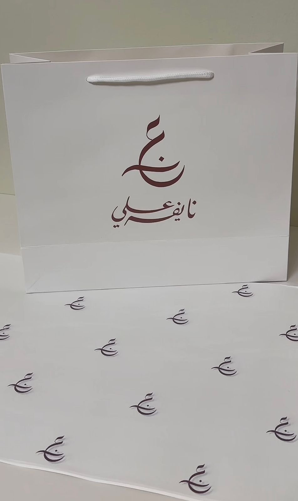 20 ورق تغليف 70*30 سم 20 ستيكر دائري 5 سم 20 (كيس مع طباعة ) لون واحد 12*28*33 سم
